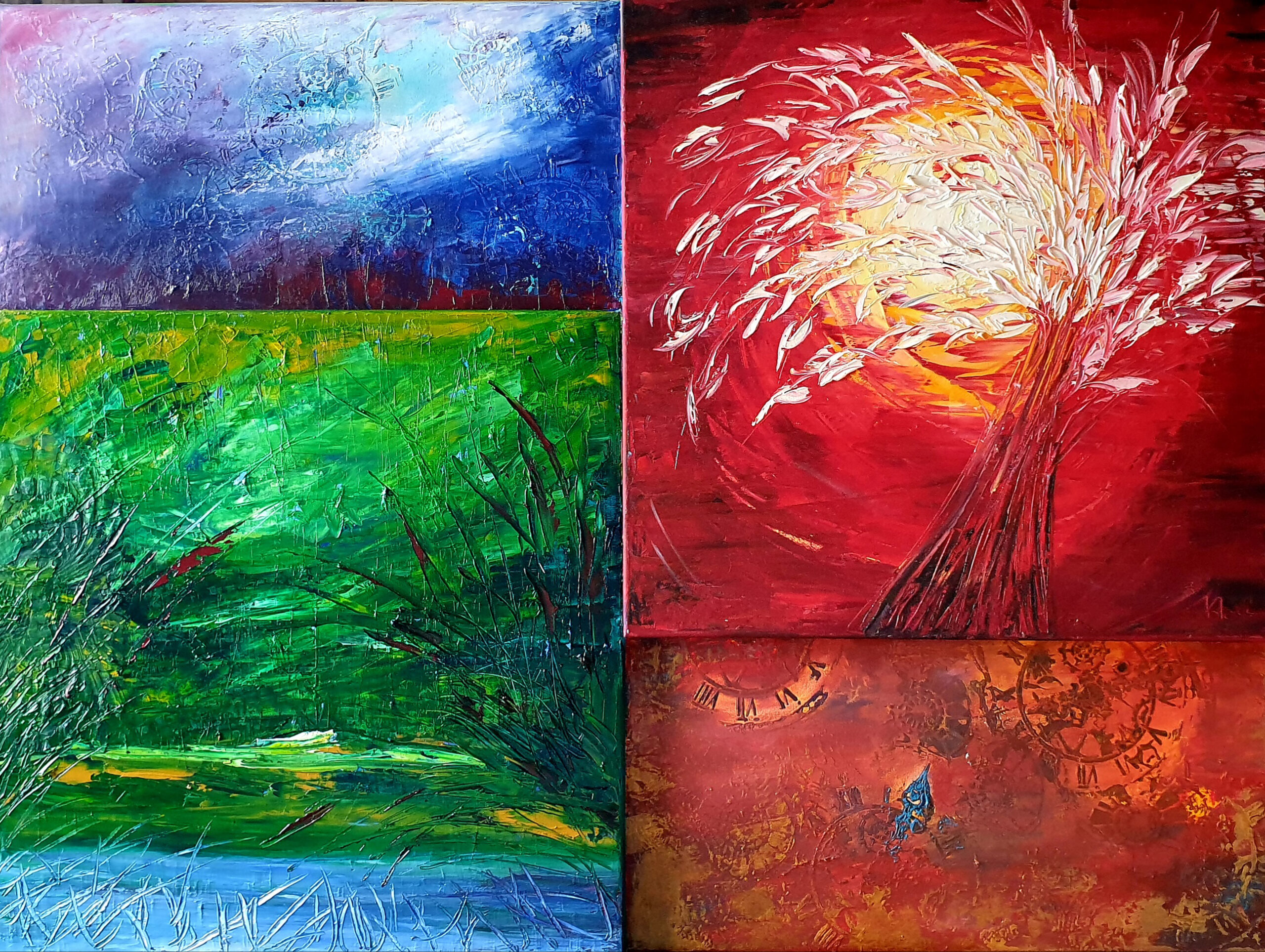 My artistic process involves the meticulous assembly of multiple canvas layers, resulting in a distinctive three-dimensional composition. This method allows the artwork to extend beyond the flat surface, creating a dynamic sense of depth and spatial presence. The canvases themselves are not only the medium but also become an integral part of the framing structure.